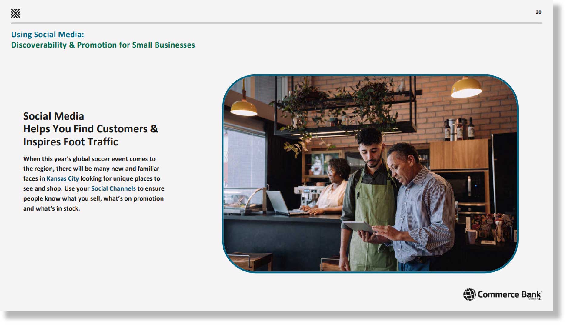Commerce Bank and VML have come together to bring valuable marketing knowledge and practical strategies to small businesses across the region. Together, we are committed to helping them navigate growth opportunities with confidence. Through these valuable resources, business owners can learn how to strengthen their digital presence, engage with customers on social media, and create in-store experiences that drive revenue and long-term loyalty while taking advantage of never-before-seen opportunities in their market.