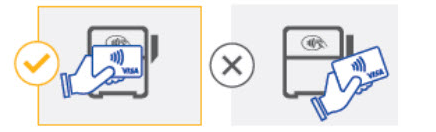 Tap to pay. The cardholder should hold the card within 1-2 inches of the Contactless Symbol . If a contactless card is too far away from the checkout terminal, the terminal may not read the payment at checkout.Don't angle the card. The contactless card works best when held flat over the Contactless Symbol and not at an angle. Avoid "card class." Sometimes, cardholders inadvertently hold a wallet with more than one contactless card against the contactless-enabled checkout terminal. In such instances, the checkout terminal may display a message indicating the customer needs to present one card only and will not proceed until the cardholder selects a single contactless card. Cardholders then should ensure only one contactless card is tapped. |